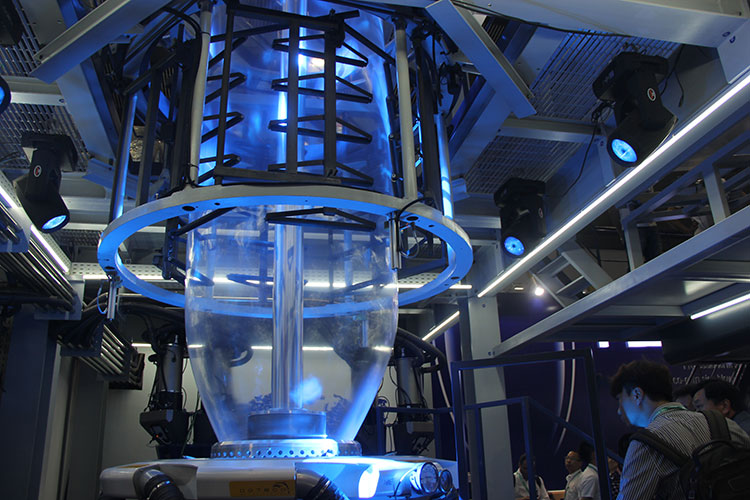吹膜機(jī)是一種通過螺桿將塑料粒子融化,再通過特定模具將融化的流動塑料吹漲成薄膜的一種機(jī)器。