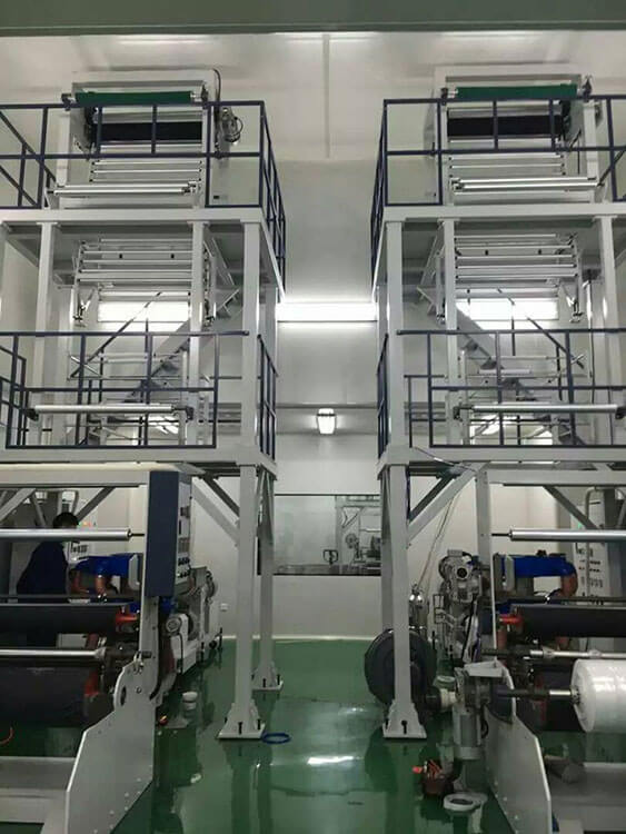 我司生產(chǎn)的單層吹膜機(jī)生產(chǎn)線適用于吹制高低壓聚乙烯、產(chǎn)品廣泛用于包裝膜,農(nóng)業(yè)復(fù)蓋膜,可降解地膜,服裝袋薄膜等。本機(jī)組在優(yōu)化產(chǎn)量的同時(shí),在機(jī)組加熱上采用脈沖加熱,可以減少或不使用冷卻風(fēng)機(jī),達(dá)到熱能的最大利用率。從而市產(chǎn)量增加,能耗降低的效果。